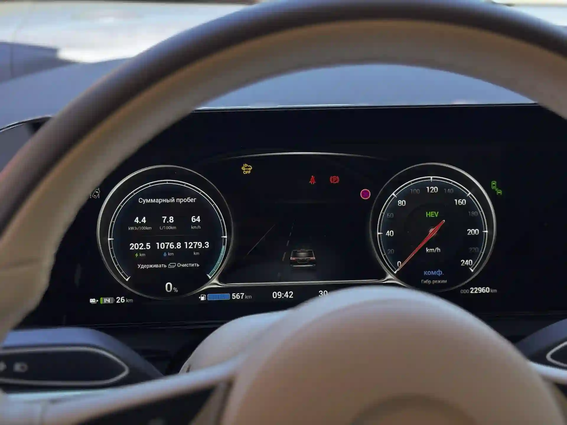 Обычно такая схема считается более пригодной для коротких городских поездок — чтобы в промежутках ставить машину на зарядку и ездить вообще чисто на электричестве. Но и в дальней дороге гибрид очень даже актуален — я проехал на МЕЧТА / DREAM одним махом 500 км и сжег только бак бензина, при этом разрядив батарею лишь на 60%. Средний расход почти за 1300 км теста получился всего 7,8 литра!