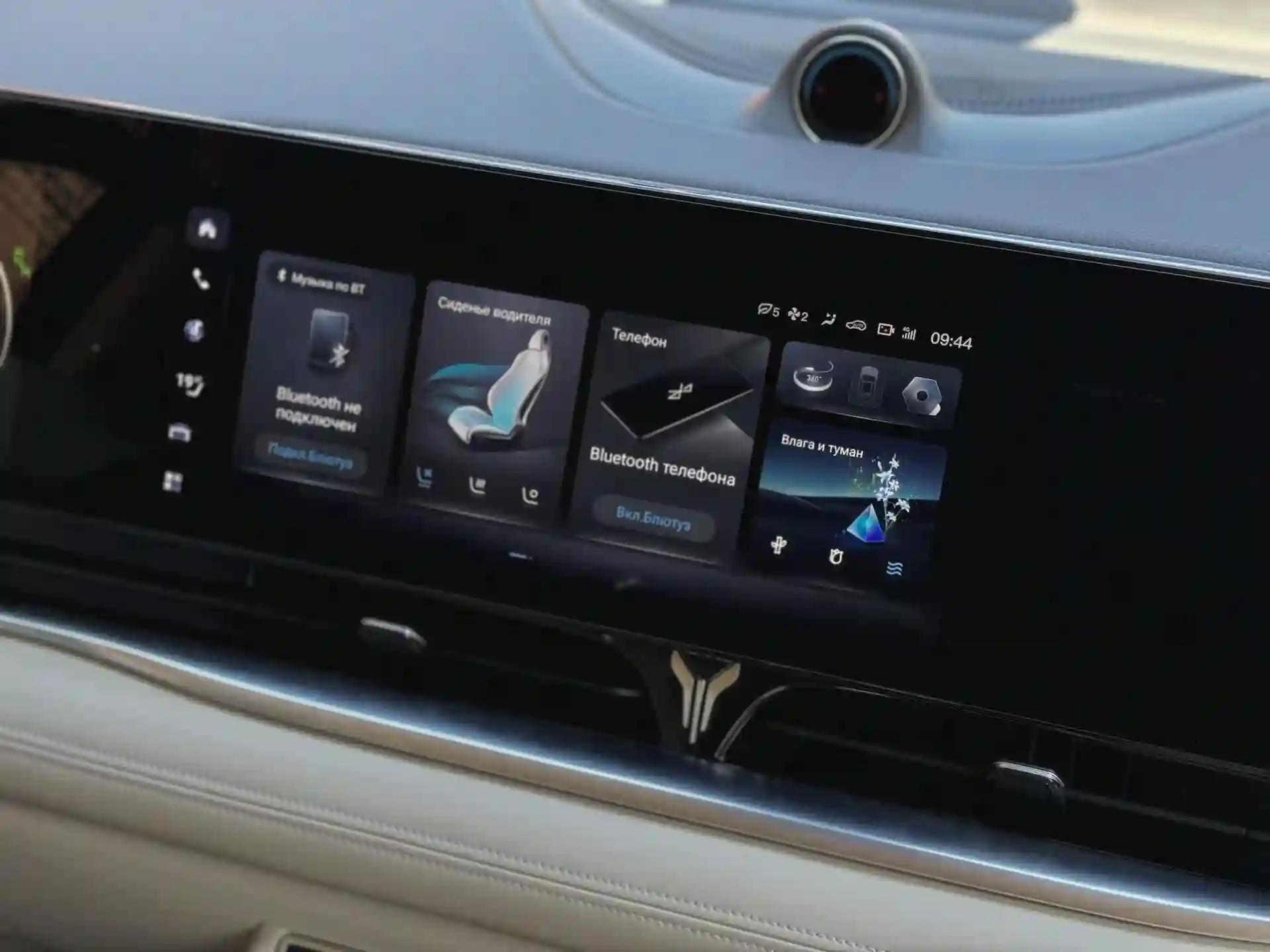 Интерфейс для китайской машины очень хорош — красивые иконки, тщательная прорисовка, отменное быстродействие. Аудиосистема, к слову, хороша — сабвуфер был кем-то выкручен в настройках на максимум и заставлял дребезжать большую панорамную крышу. За панорамным дисплеем на передней панели виднеется камера, которая распознает лицо водителя и его жесты. Передние кресла довольно удобны, хотя подушку бы хотелось подлиннее. Но посадка очень даже человеческая — диапазон регулировки руля по вылету вполне комфортный, да и сам он хорош.