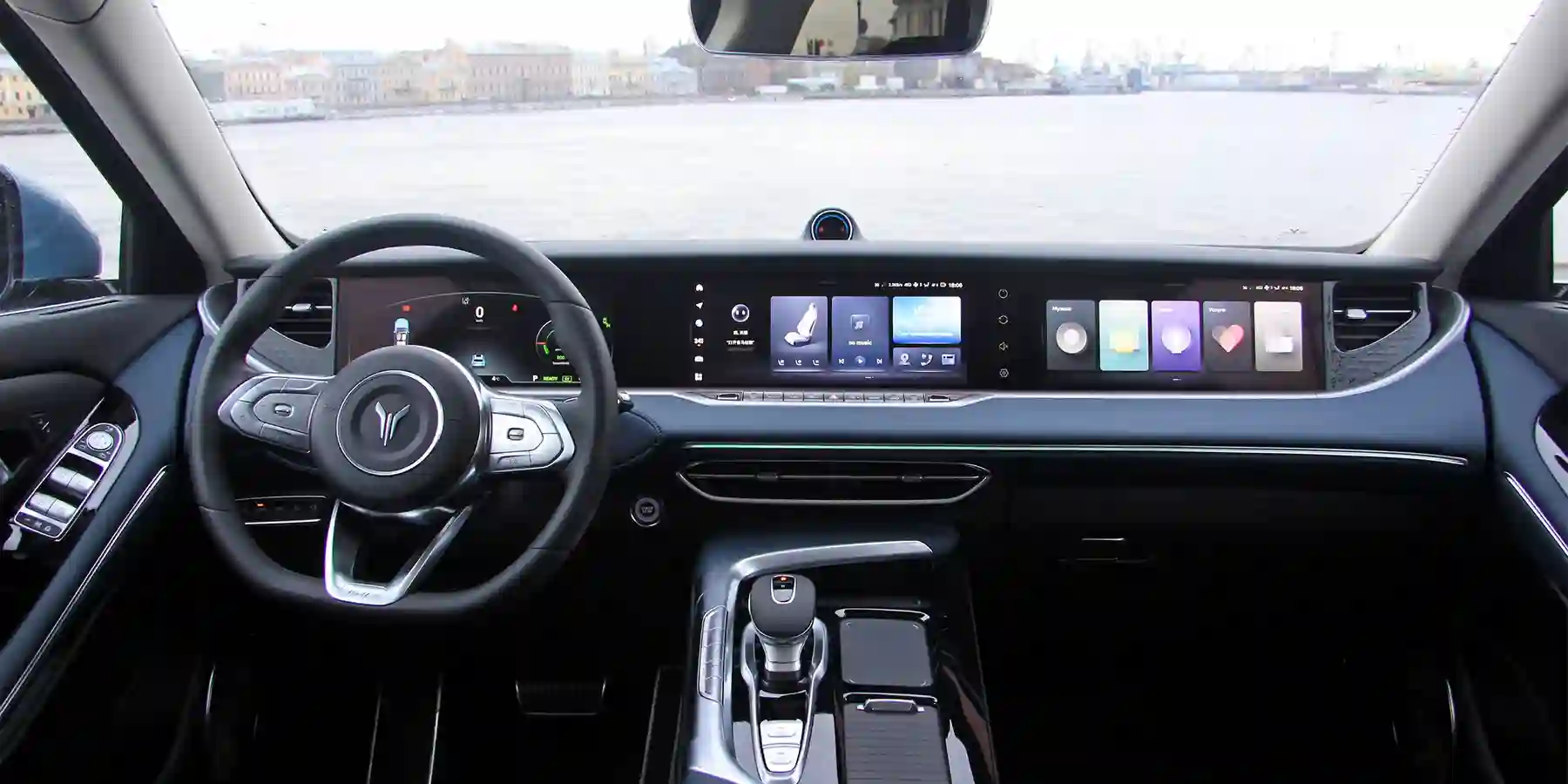 Создатели Voyah ФРИ / FREE не поскупились на оснащение. Передние сиденья – не только с обогревом и вентиляцией, но и неплохим массажером. Панорамная крыша – без шторки, с десятью уровнями затемнения, которые выбирает водитель. Такое доводилось видеть только на Porsche Taycan.