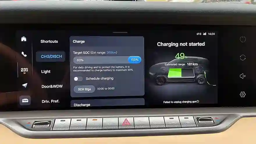 ФРИ / FREE оснащен двумя наиболее распространенными разъёмами для заряда в России: CCS и Type-2. Если живете за городом, то на зарядку переменным током через разъём Type-2 (мощностью 11 кВт) в диапазоне от 5% до 100% уйдет 9,5 часов. На практике с питанием от обычной дачной розетки не задалось. Судя по дисплею, на входящем в комплектацию кабеле под бытовую сеть машина пыталась взять из нее 3,5 кВт. Проводка к такому оказалась не готова, и автомат выбивало каждые пятнадцать минут. Нужен кабель попроще, чтобы довольствовался стандартными 2-2,5 кВт.