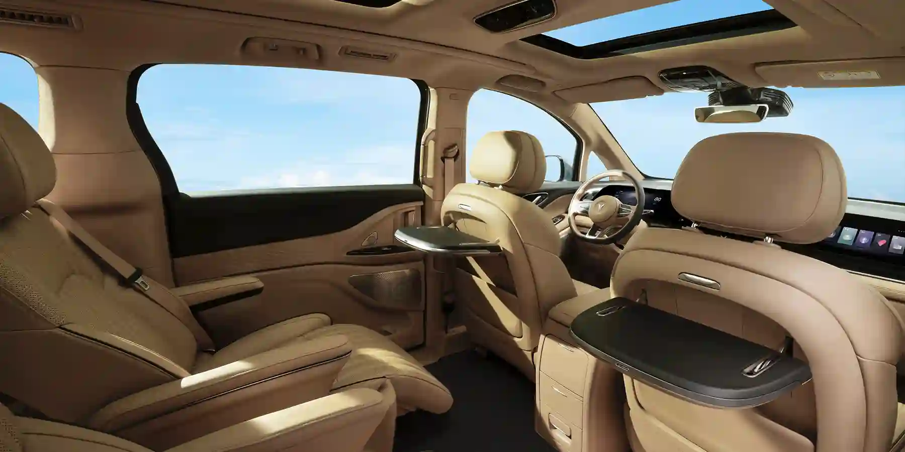 Электрический минивэн VOYAH МЕЧТА / DREAM оборудован тремя инновационными мультимедийными 12,3-дюймовыми дисплеями суммарной шириной 1400 мм, каждый из которых обладает эксклюзивным функционалом. Комфорт обеспечивают двухсекционная панорамная крыша с солнцезащитными шторками, атмосферная подсветка салона с 64 вариантами цветовых решений, а также мощный акустический комплекс премиального уровня с 10 динамиками. Высокоэффективная система кондиционирования дополнена ионизатором воздуха с аромадиффузором, позволяющим менять ароматику салона в зависимости от предпочтений водителя и пассажиров.