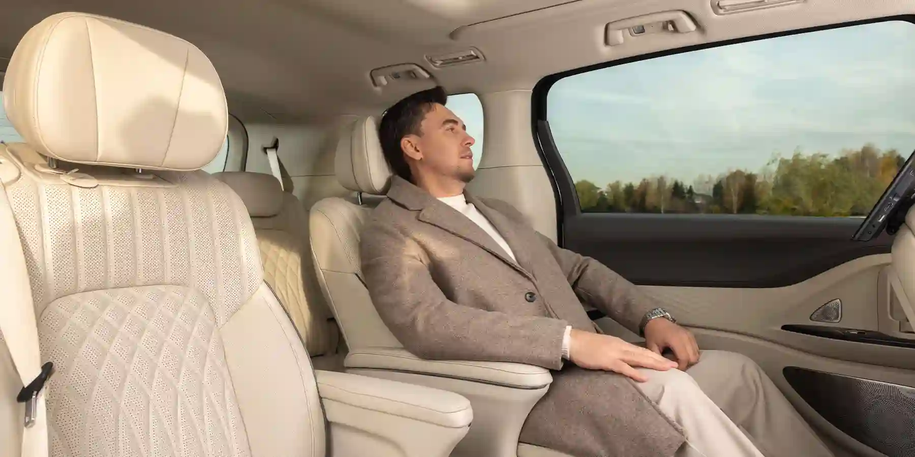 Новая версия с увеличенным запасом хода получила дополнительные опции и стала еще комфортней. Модель отличается двойным акустическим остеклением сдвижных дверей, а также оборудуется функцией массажа передних сидений, что незаменимо при дальних путешествиях, к которым располагает впечатляющий запас хода. На вспомогательной панели теперь присутствует порт TypeC 18W в паре с USB-портом 7.5w, а беспроводная зарядка для мобильных телефонов увеличила мощность до 50W.