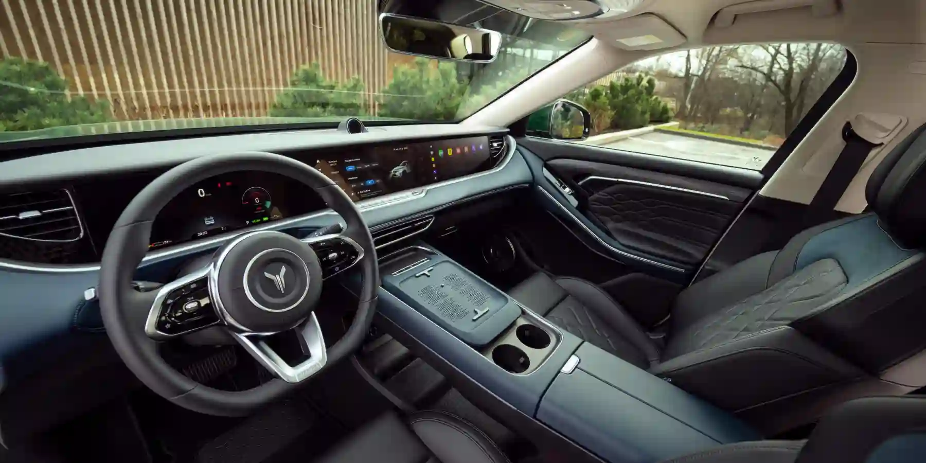 Подчеркнутая технологичность внутреннего пространства составляет характерную особенность модели VOYAH ФРИ / FREE Спорт. В ряду ключевых элементов интерьера – первая в мире подъемная панель приборов с тремя интегрированными 12,3” дисплеями и «штурманский» экран, который позволяет легко настроить аудио-систему и разобраться с видео-контентом как водителю, так и переднему пассажиру. Обивка сидений кроссовера выполнена из высококачественной экокожи Oeko-Tex Certification.