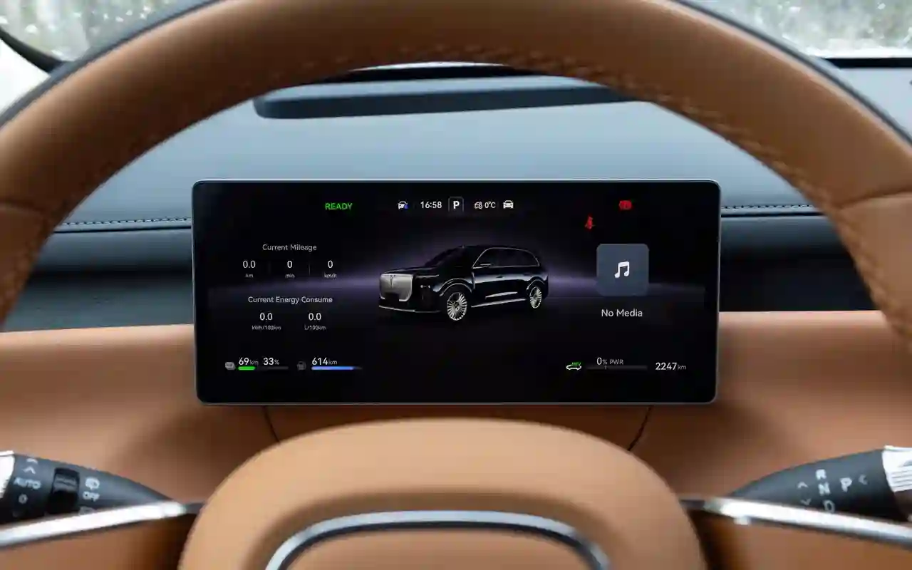 1,5-литровому 150-сильному турбомотору под капотом VOYAH ТАЙШАН / TAISHAN приходится трудиться много, ведь на чистом электричестве эта машина может проезжать всего до 280 км. На деле скромного движка хватает и на помощь двум электрическим моторам (по одному на каждой оси), и на подпитку батареи прямо на ходу.