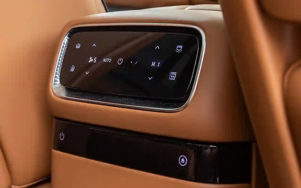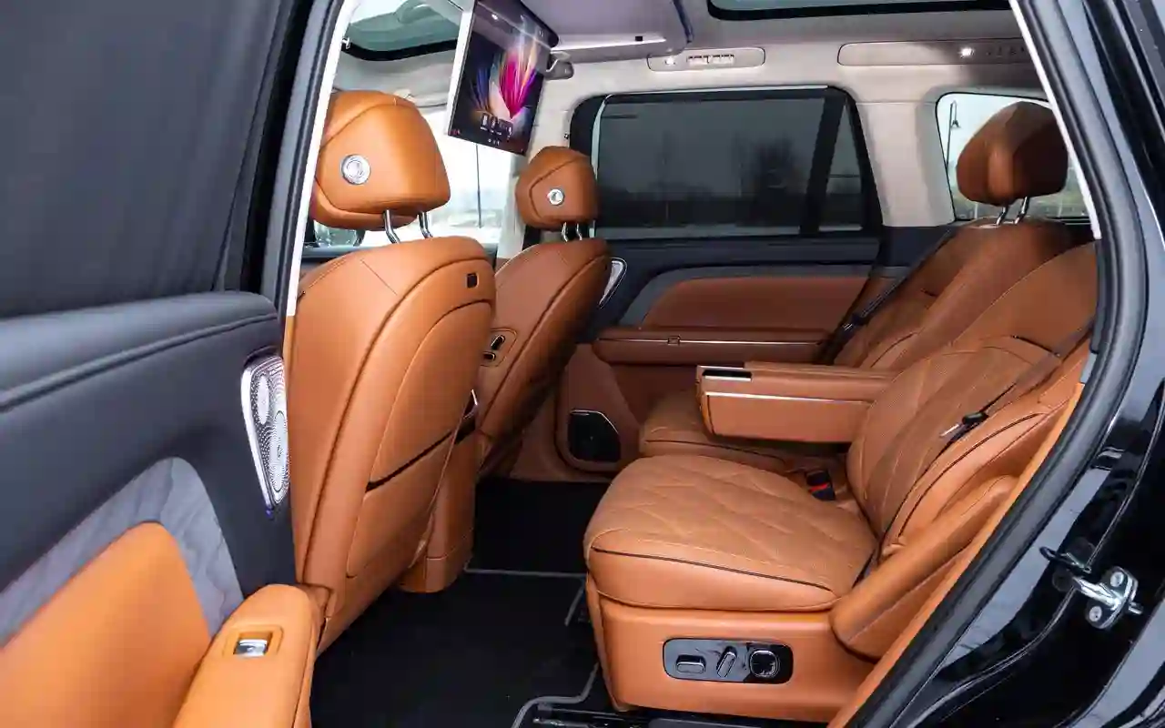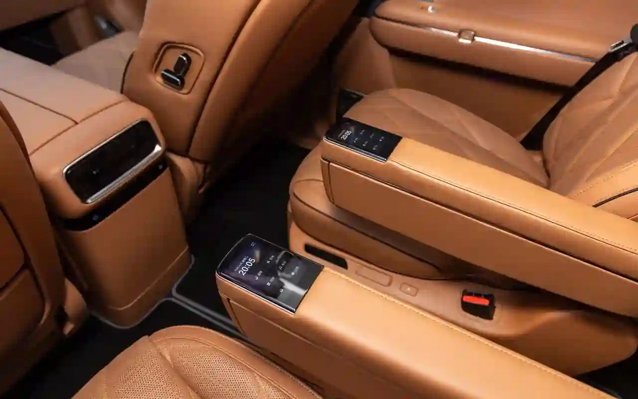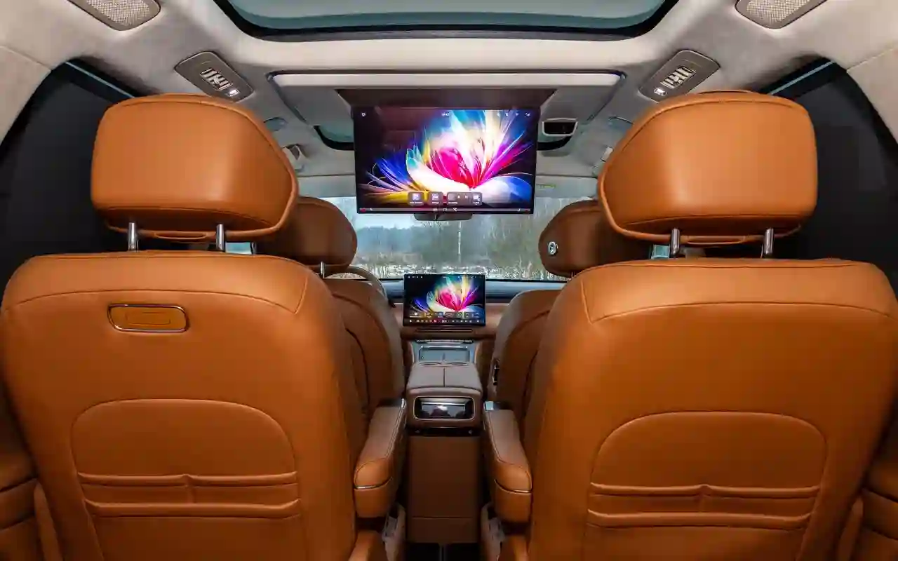 О банальных подогревах с вентиляциями говорить не имеет смысла. У каждого сиденья на втором ряду — отдельный 3,5-дюймовый цифровой пульт со всеми прибамбасами: хоть музыку включай, хоть караоке или видеоигру, либо же раскладывай в кровать, если захотелось вздремнуть. Откидной телевизор диагональю 21,4 дюйма на потолке, громадная панорамная крыша, электрические шторки на боковых окнах и столики в спинках передних кресел — все в VOYAH ТАЙШАН / TAISHAN кричит о том, что пассажир здесь главный и машина только для него.