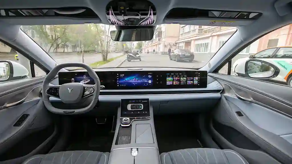 Как любой уважающий себя современный премиум-автомобиль, Voyah СТРАСТЬ / PASSION оснащен различными ассистентами. Среди них, например, есть камеры кругового обзора, предупреждение о столкновении, помощь в парковке и др. Сенсоры машины очень чувствительны и весьма точно измеряют расстояние до преграды. Умные системы очень помогают в первые часы езды, пока водитель привыкает к габаритам транспорта.